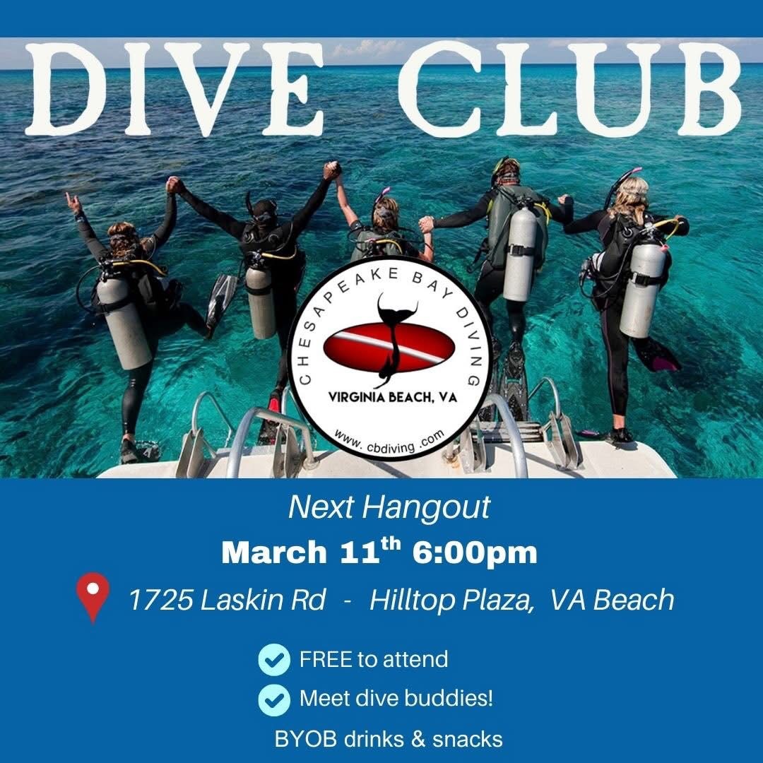 Join our dive Social, hang out and share scuba stories with your dive buddies No Membership required. We meet once a month at 6pm after the store closes here at Chesapeake Bay Diving. Welsome to bring a snack to share & BY.. Read More